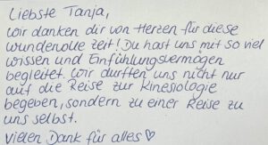 Zum Abschluss bekam ich von den Teilnehmer’innen eine Karte, auf der stand: